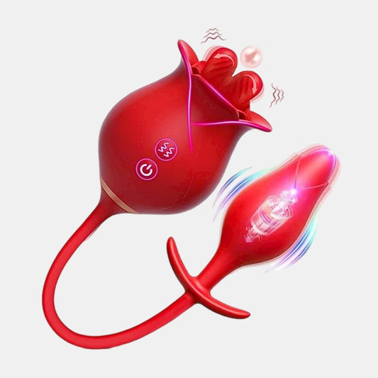 Dual Tongue Licking Rose Vibrator Anal Plug Sex Toy WECS-64